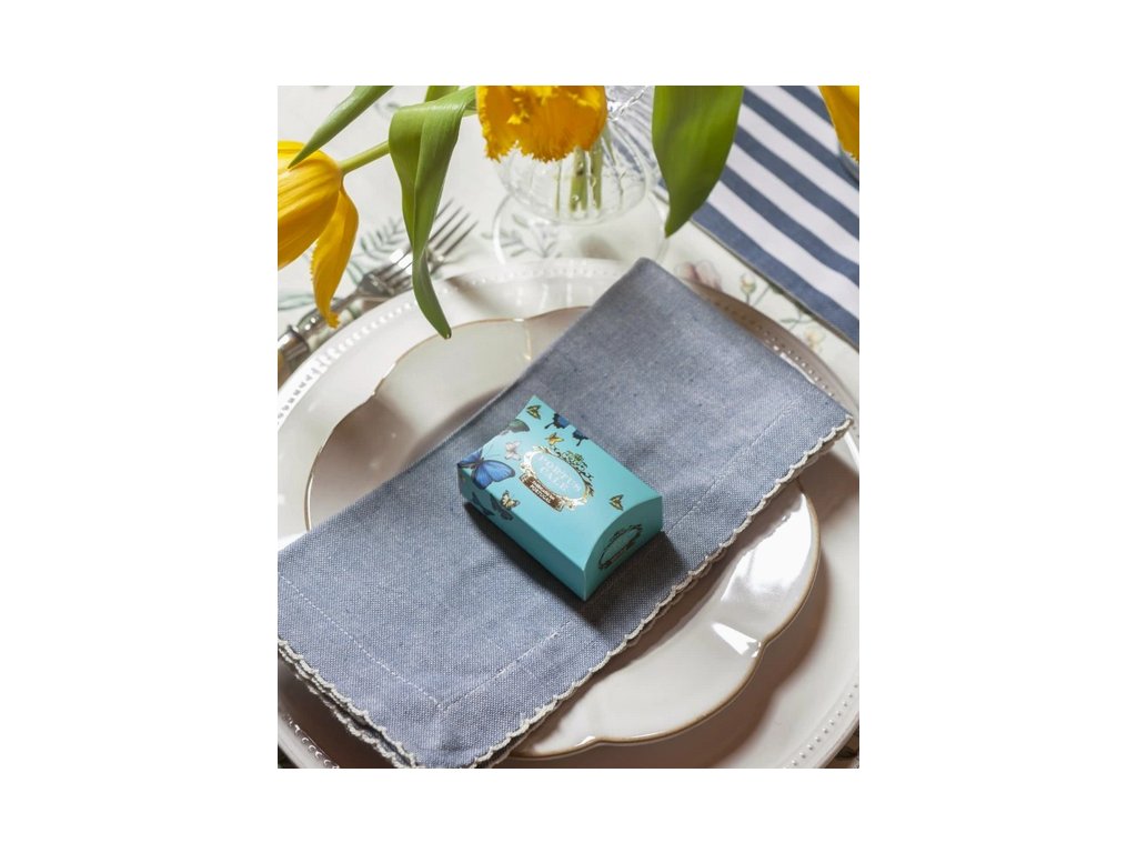 Mýdlo je vyrobeno z 100% rostlinného základu a obohaceno o bambucké máslo, které pokožku jemně čistí a zanechává ji hydratovanou. Je ručně baleno do elegantního obalu s motivem motýlků, což z něj činí ideální dárek pro vaše blízké.