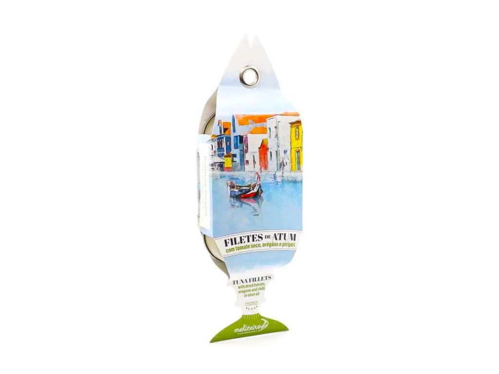 Moliceiro Conservas, čerpá inspiraci z moře a laguny Ria de Aveiro. Právě na tuto linii se zaměřujeme i my. Moliceiro Conservas vytváří prémiové rybí konzervy – především filety z tuňáka, tresky a sardinky – které vynikají autentickou chutí, minimálním zpracováním a důrazem na kvalitní suroviny.
