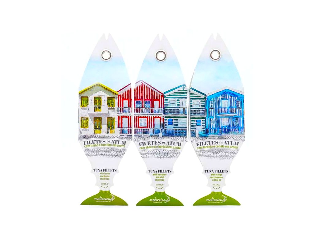 Moliceiro Conservas, čerpá inspiraci z moře a laguny Ria de Aveiro. Právě na tuto linii se zaměřujeme i my. Moliceiro Conservas vytváří prémiové rybí konzervy – především filety z tuňáka, tresky a sardinky – které vynikají autentickou chutí, minimálním zpracováním a důrazem na kvalitní suroviny.